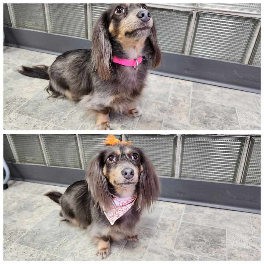 Please call for pricing estimates. The provided estimates will be based on dog weight and coat type – they are estimated “starting” prices, the cost may increase depending on the dog’s coat condition, size, and/or disposition. Grooms that are more difficult or time-consuming will have higher prices. WI & Milwaukee Sales tax (7.9%) will be added to the final price determined by the groomer. All prices are subject to change without notice. A de-matting fee of $1 per 1 minute of work will be added to the price for dogs with matted fur.
