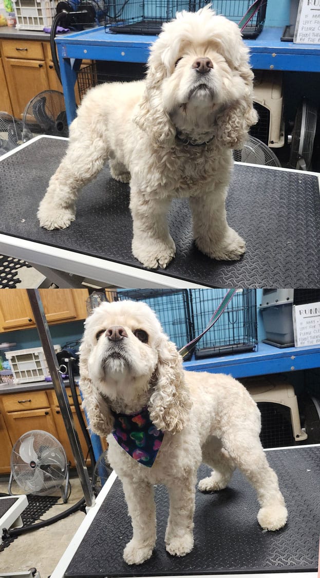 Includes a Bath Brush & More plus a FULL BODY HAIR CUT AND STYLE. Let us beautify your dog! Full Grooming after a Bath Brush & More (included) gives great results. Share your style preferences with the groomers and let us trim your dog just how you want it. Puppy cuts, summer shave downs, longer hairdos with scissor work, or your dog’s breed standard – whatever suits you best.